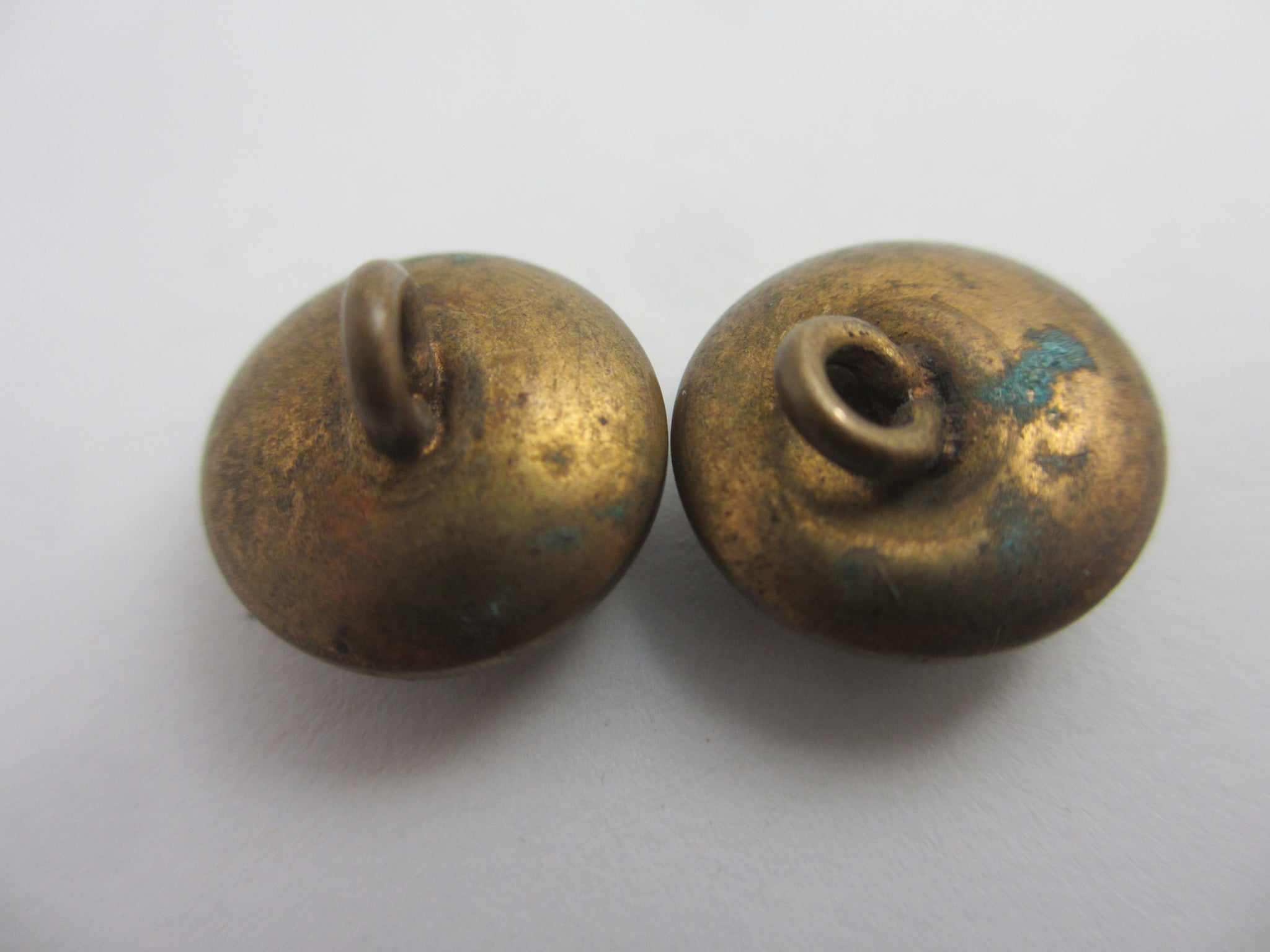 Fantastic pair of antique brass buttons dating fro the Edwardian era depicting the face of a spaniel dog to the front. The fronts are Essex crystal intaglio's reverse painted, great detailing please see the pictures. Both have the rear loops, 1 is pushed over slightly. A wonderful pair of collectable antique buttons.