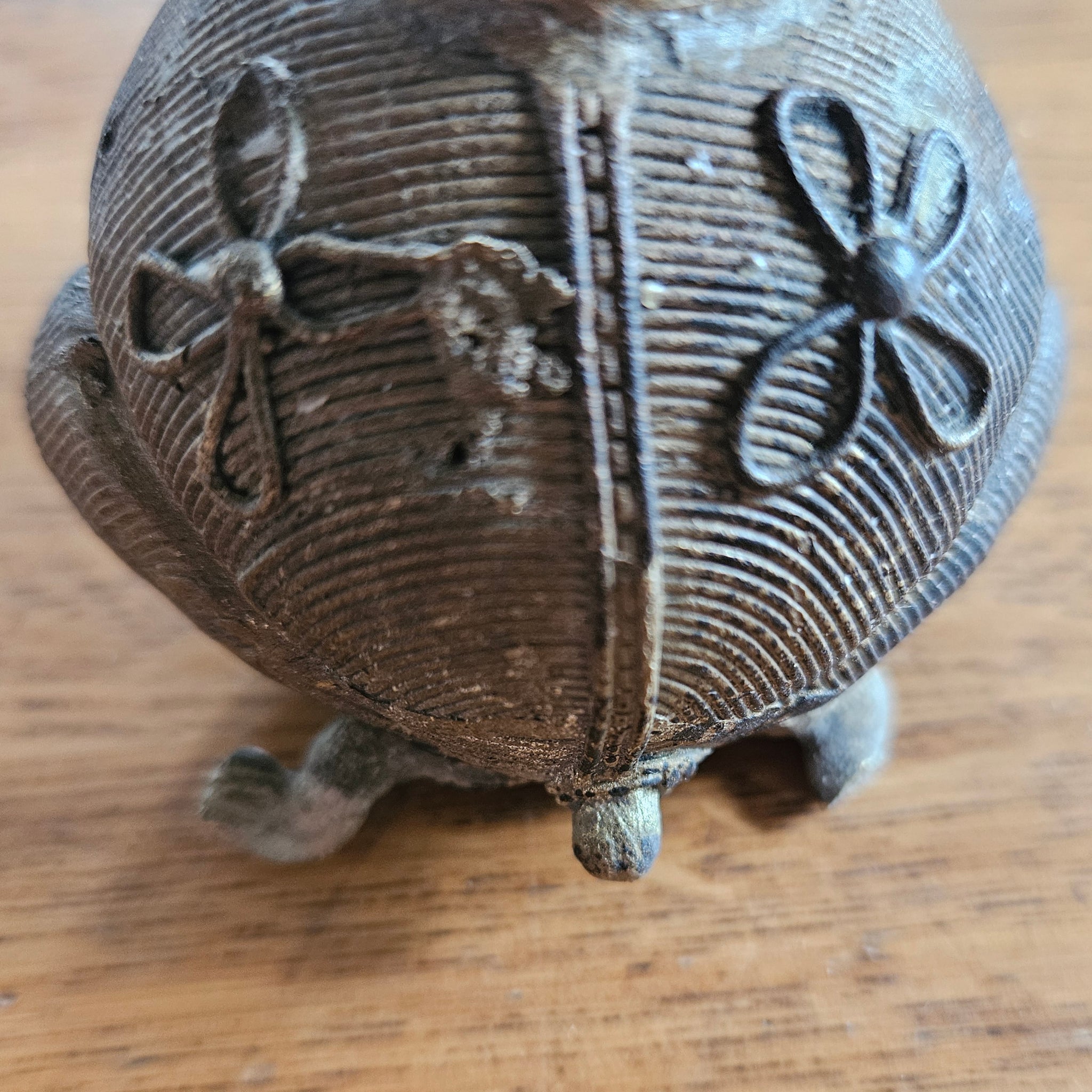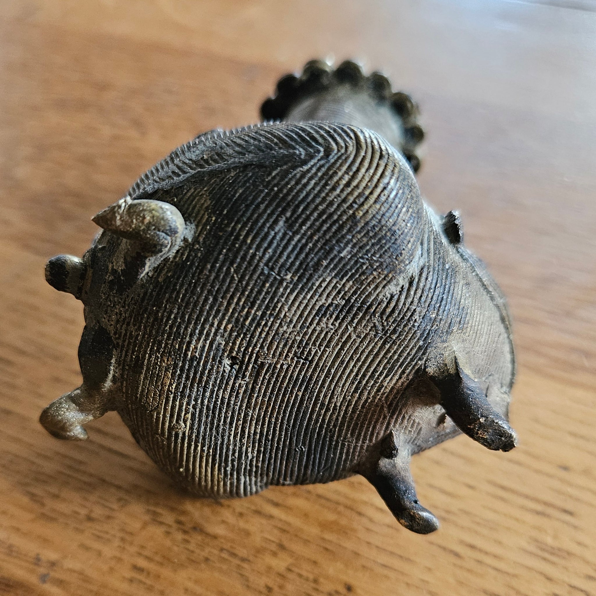 A striking example of traditional Indian Dhakra brasswork, this vintage candlestick showcases the intricate craftsmanship characteristic of this celebrated metalworking technique. Hand-cast and finished with authentic patina, the piece displays the ornamental detailing typical of Dhakra pieces. Please note: This candlestick shows signs of age and use consistent with its vintage status. There is slight damage to the rear decoration and one foot, which adds to its authentic character and history. These imperfections are reflected in the pricing and should be considered before purchase. A wonderful addition to collections of Indian metalware, antique home décor, or for those who appreciate the artistry of traditional brass casting.
