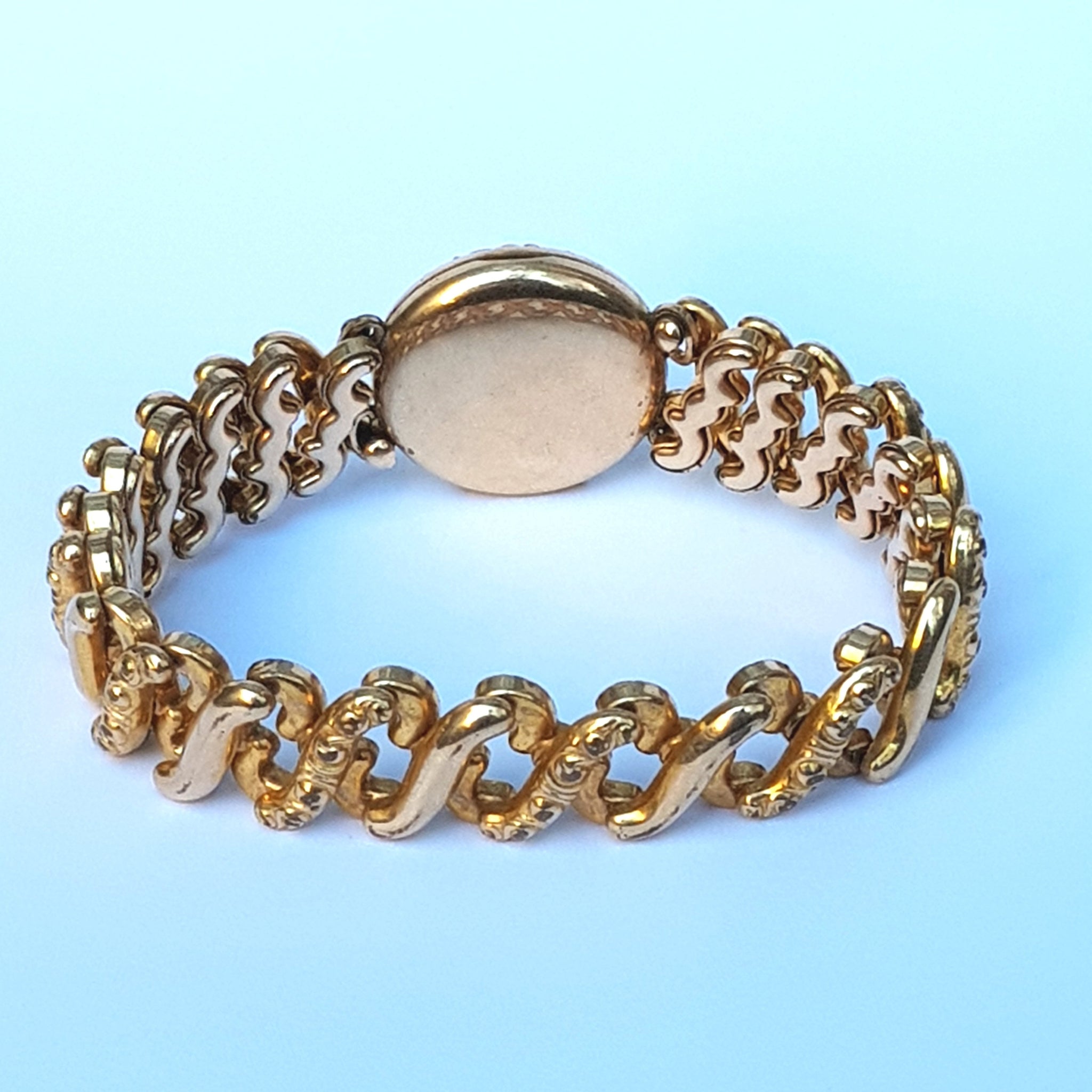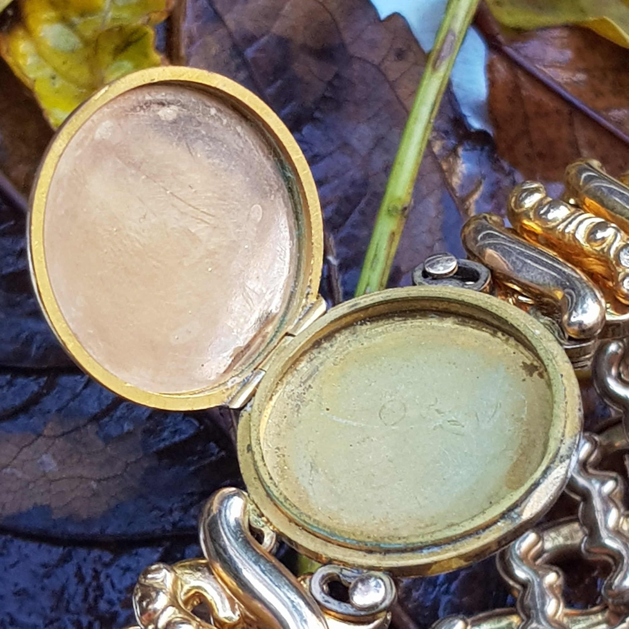 10k Rolled Yellow Gold Locket Bracelet With Concertina Shank Antique American Circa 1920's