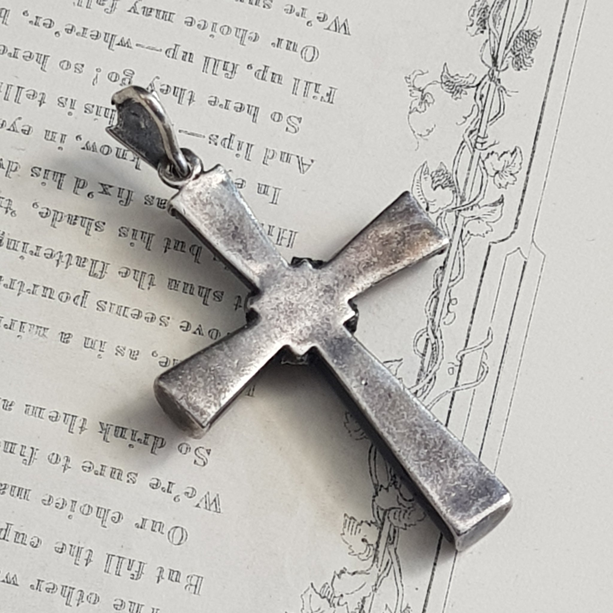 Sterling Silver Marcasite Carved Whitby Jet Cross Pendant Antique circa 1910