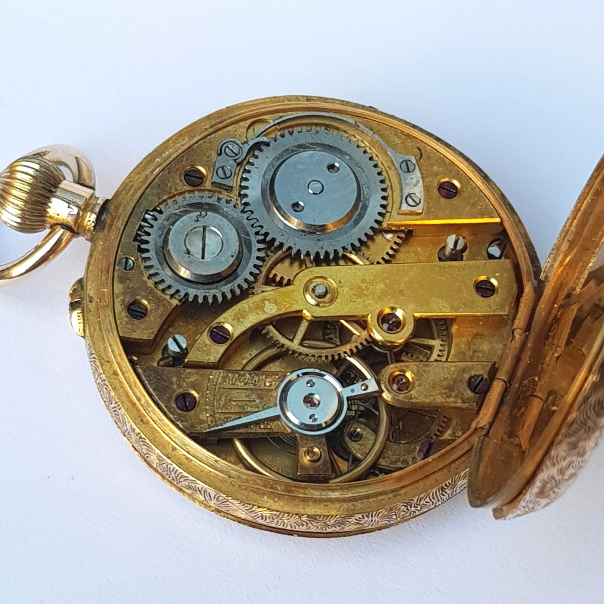 The watch case is marked for Swiss Gold 14k and is without dings, splits, damage or repairs making this to be a lovely example of the period, ready to be used and worn, would couple well with a guard chain and worn as a pendant as was popular in the period or secured to an Albertine to be worn on a garment.