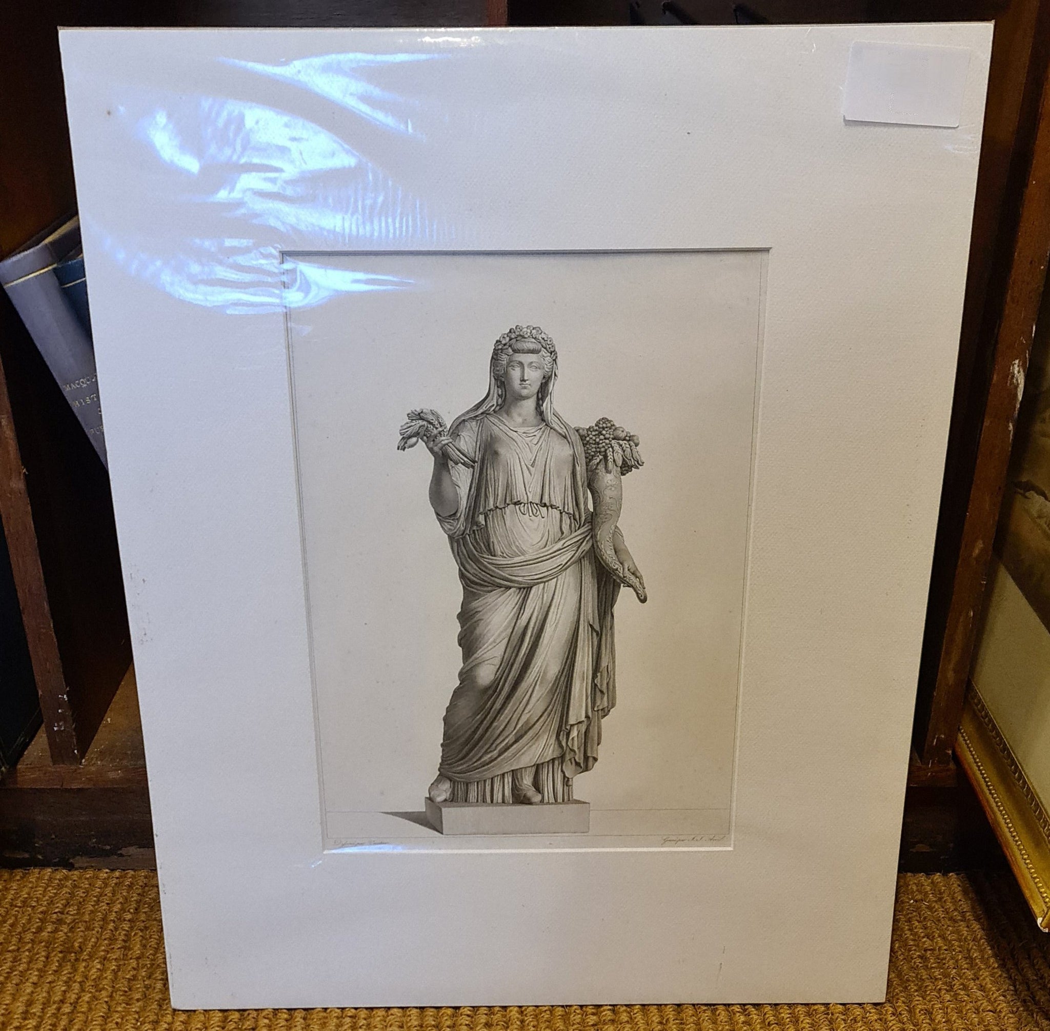 Antique early 19th Century Superb Copper Etching of the Greek Goddess 'Demeter' (Goddess of fertility, agriculture and harvest) by noted French Artist, Print maker and engraver 'Jean Jaques Avril' (jean Jaques the Elder c1744 - c1831).