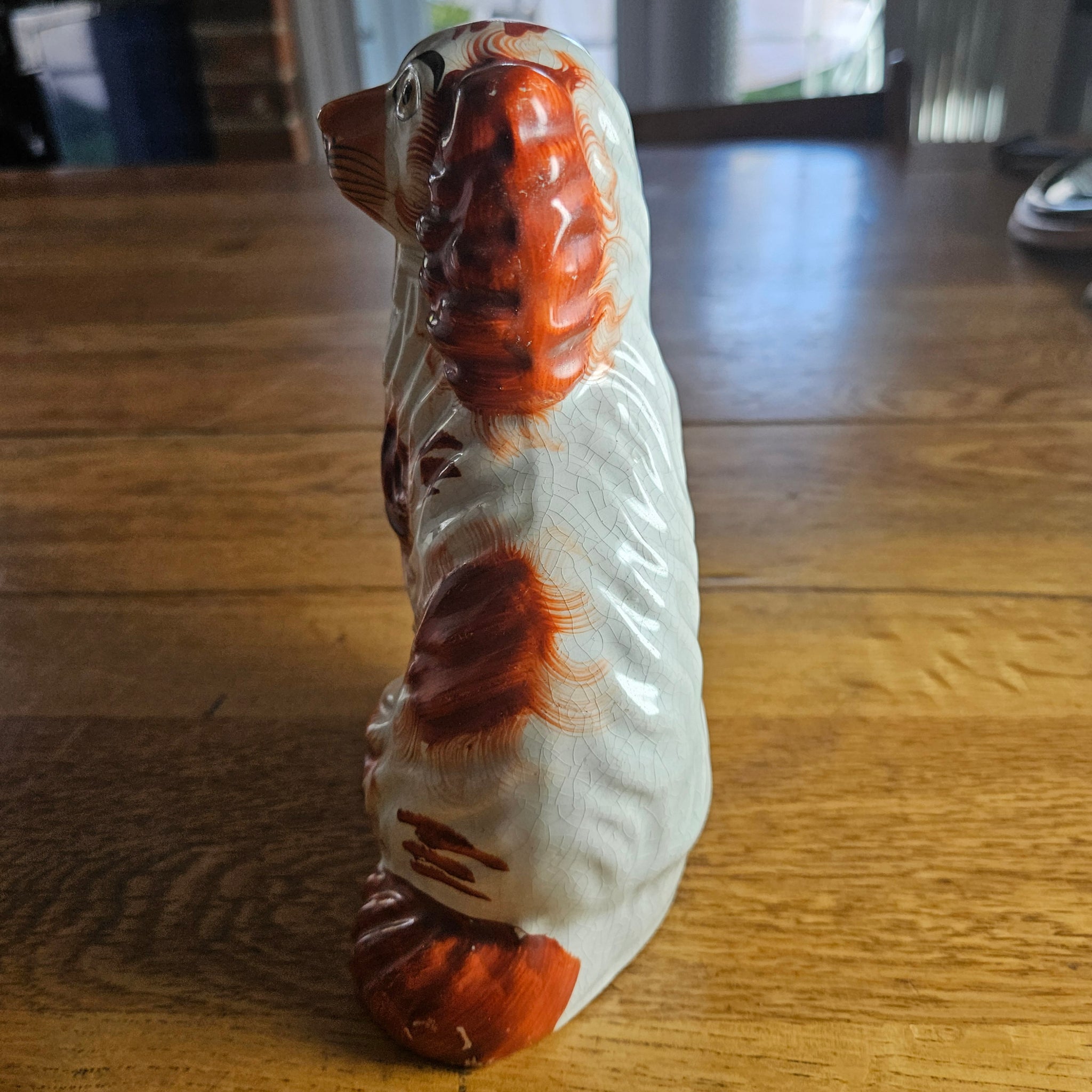 Staffordshire Iron Red Cavalier King Charles Spaniel Pottery Dog Curly Coat Antique Victorian c1860