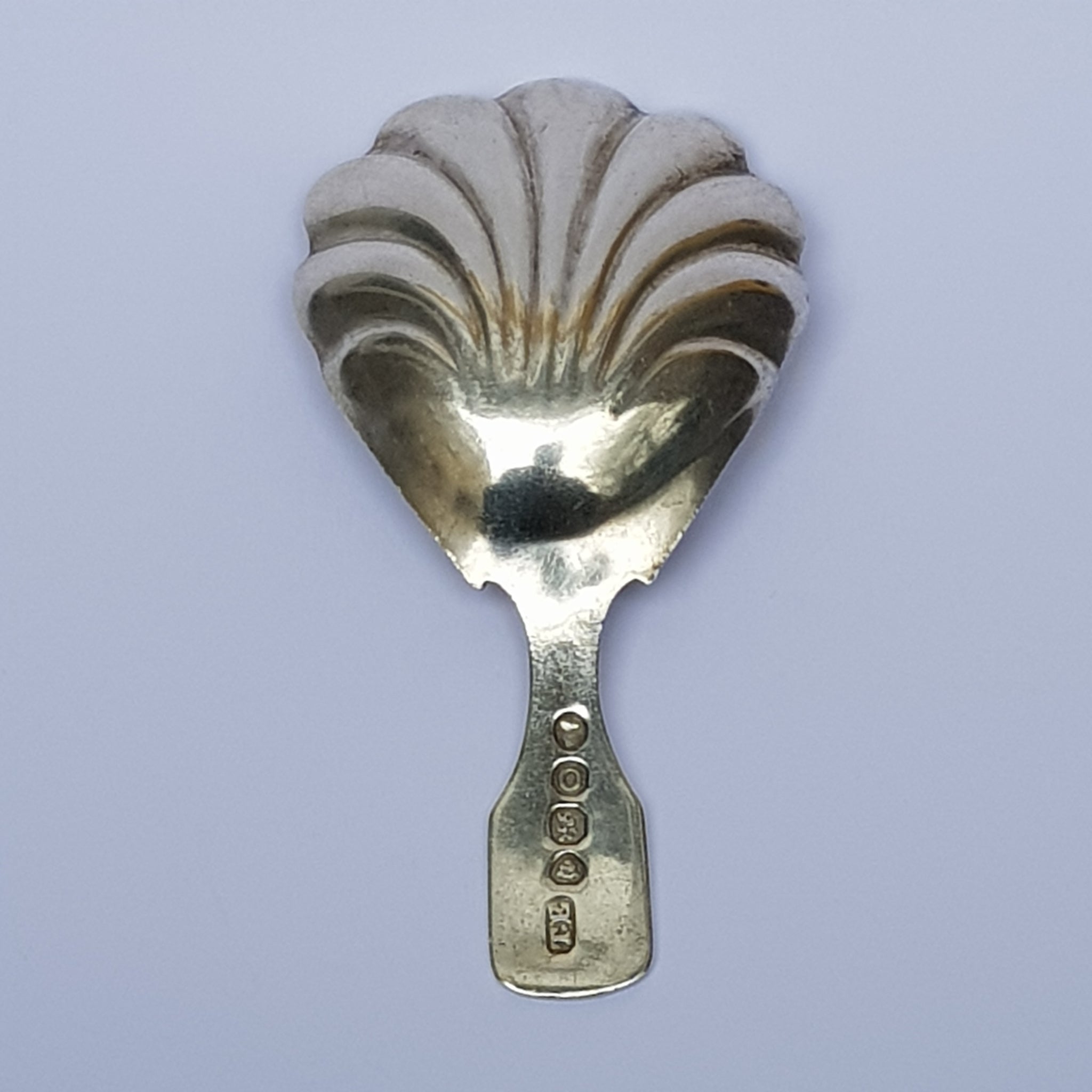 Sterling Silver Shelled Bowl Fiddle Pattern Tea Caddy Spoon Antique Georgian London Circa 1829