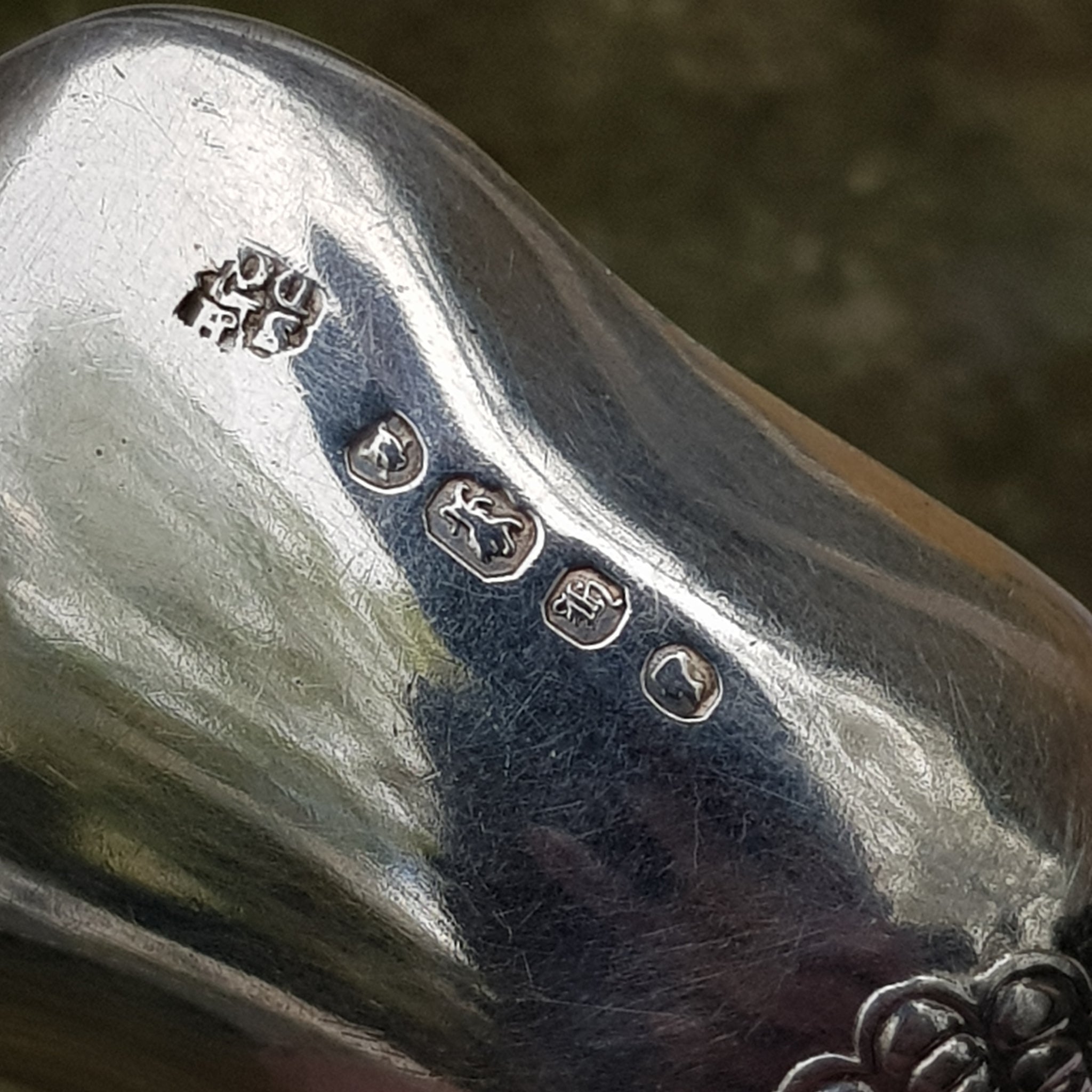 The Caddy spoon measures 10.5 cm in length with a bowl dimension of 4.5 cm x 3.3 cm and is impressed to the reverse of the bowl for London assay office circa 1843 with the makers mark for Samuel Hayne & Dudley Cater whom were Successors to a business founded in 1756 by Thomas Wallis, also present is the duty mark for Queen Victoria.
