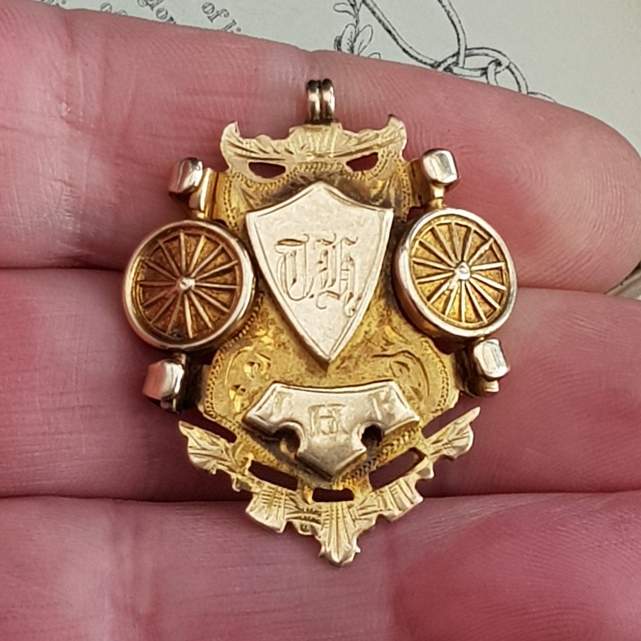 Rare 9k Gold Cycling Club Medal Hounslow Wheelers Antique Edwardian London circa 1905