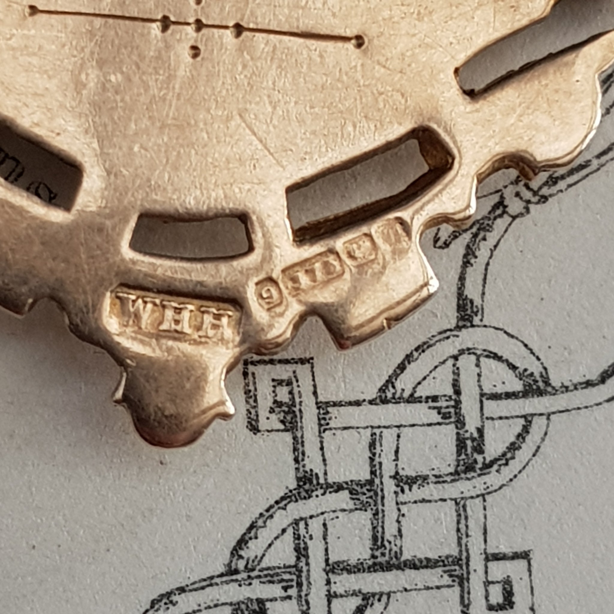 The Fob measures 3.8 cm x 3.1 cm and is impressed with good clear markings indicating London assay office 9ct Gold (375) circa 1905 with the makers mark for William Hair Haseler of Hylton Street, Birmingham.