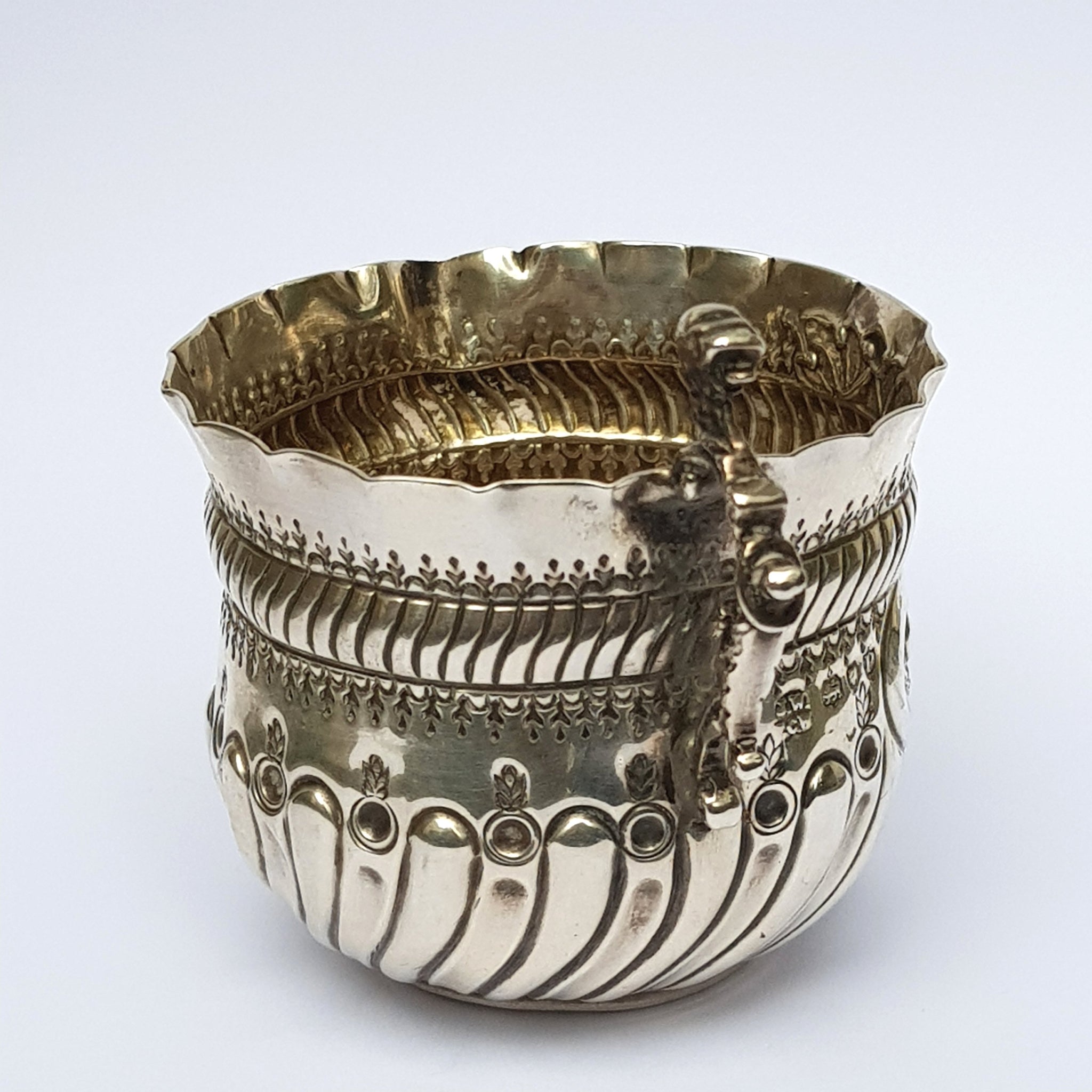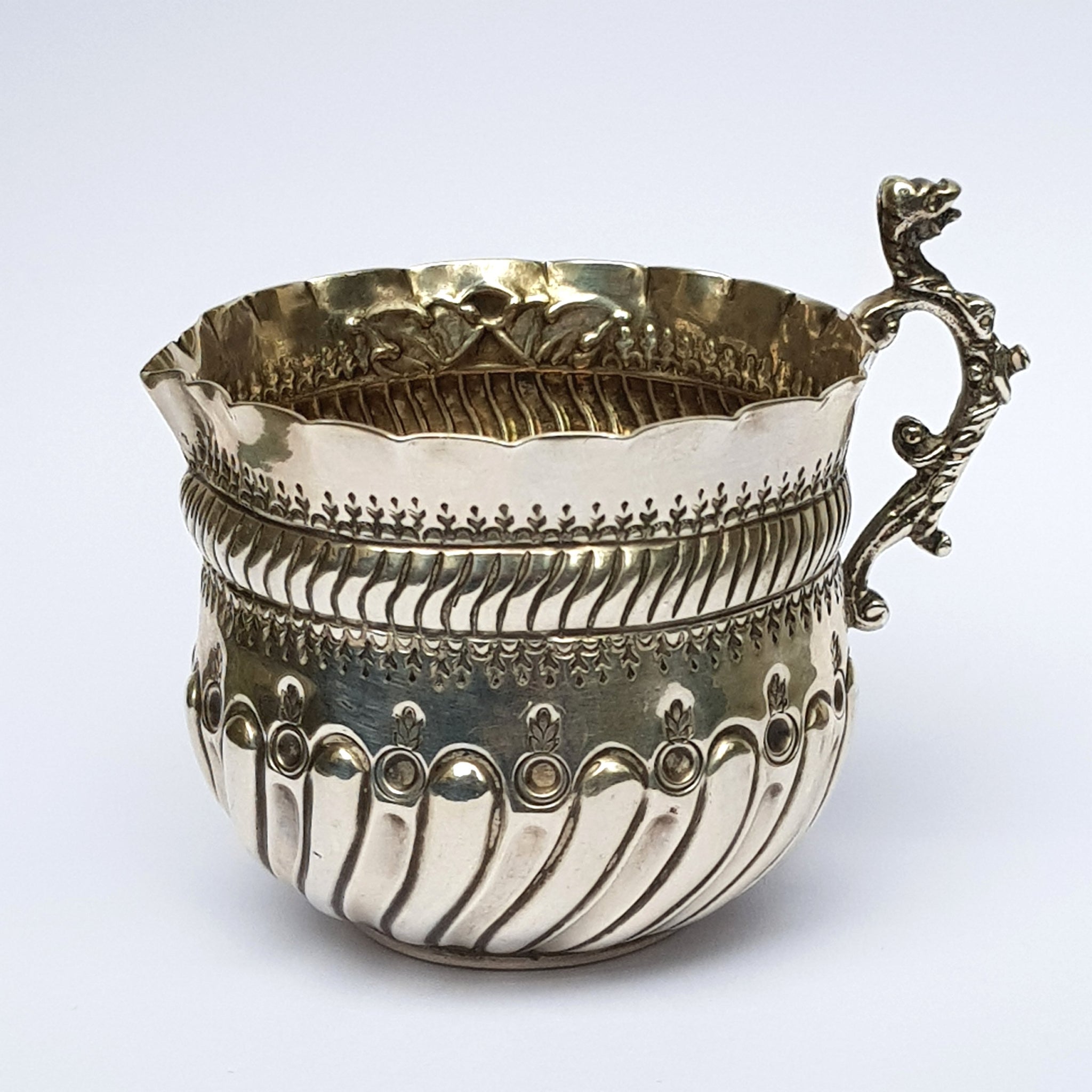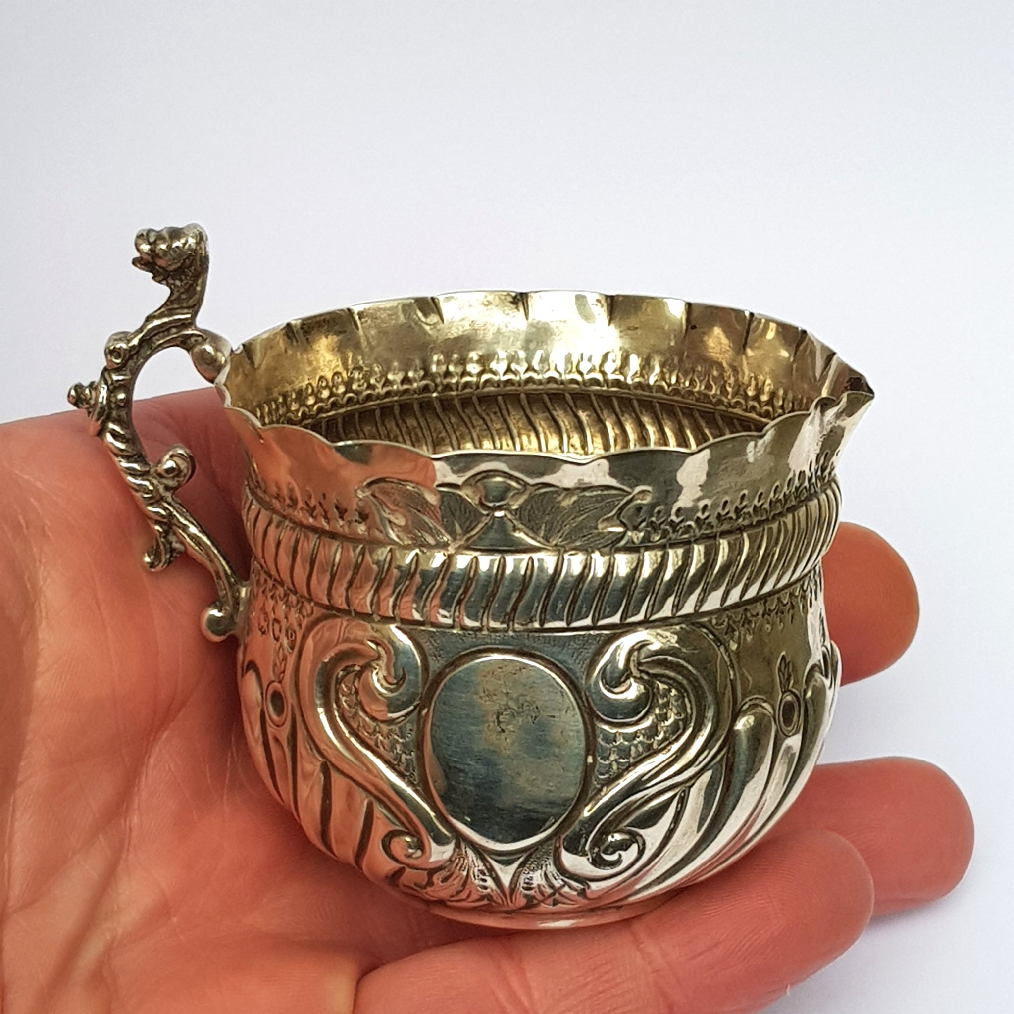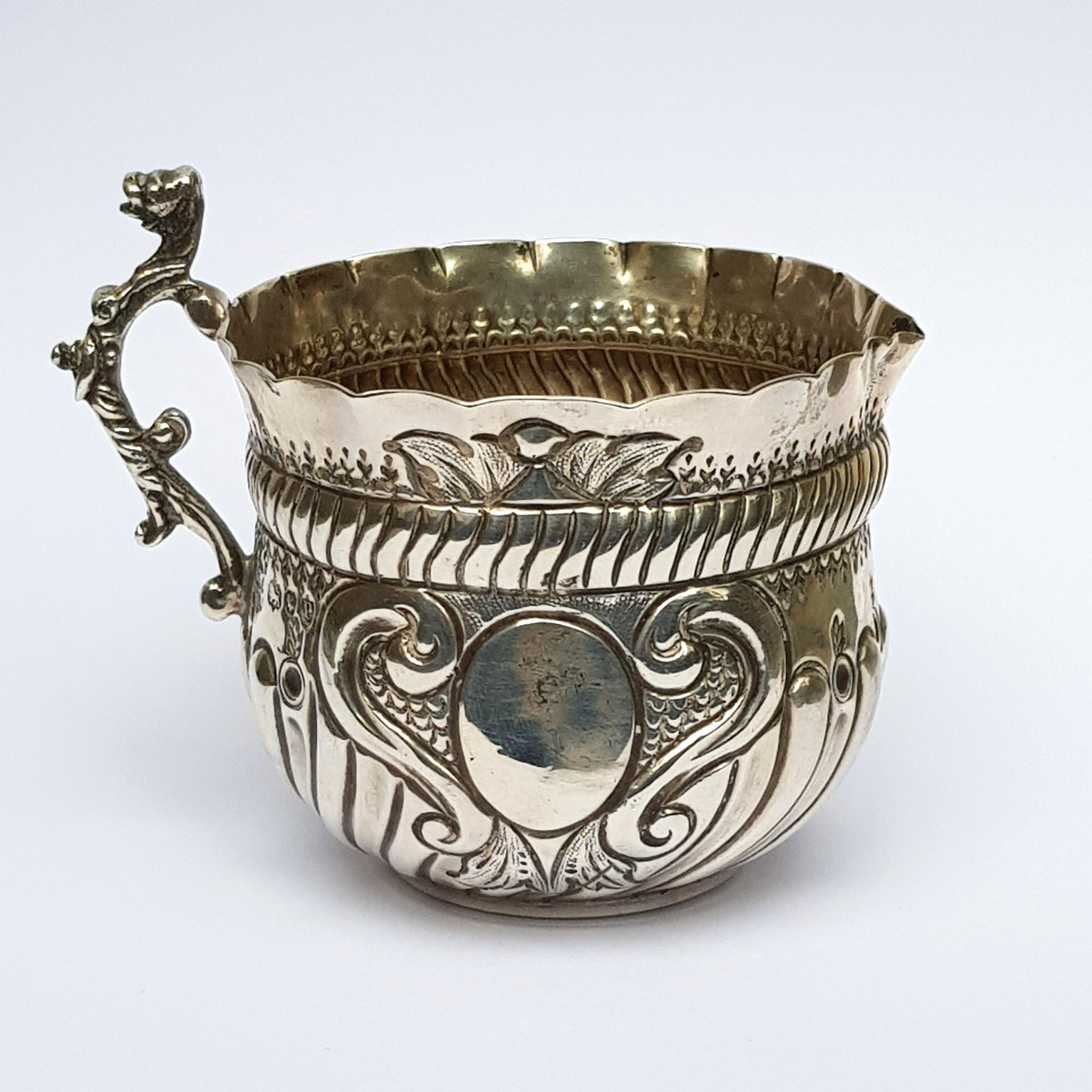 Sterling Silver Ornate Repousse Worked Creamer Jug Antique Victorian London Circa 1890