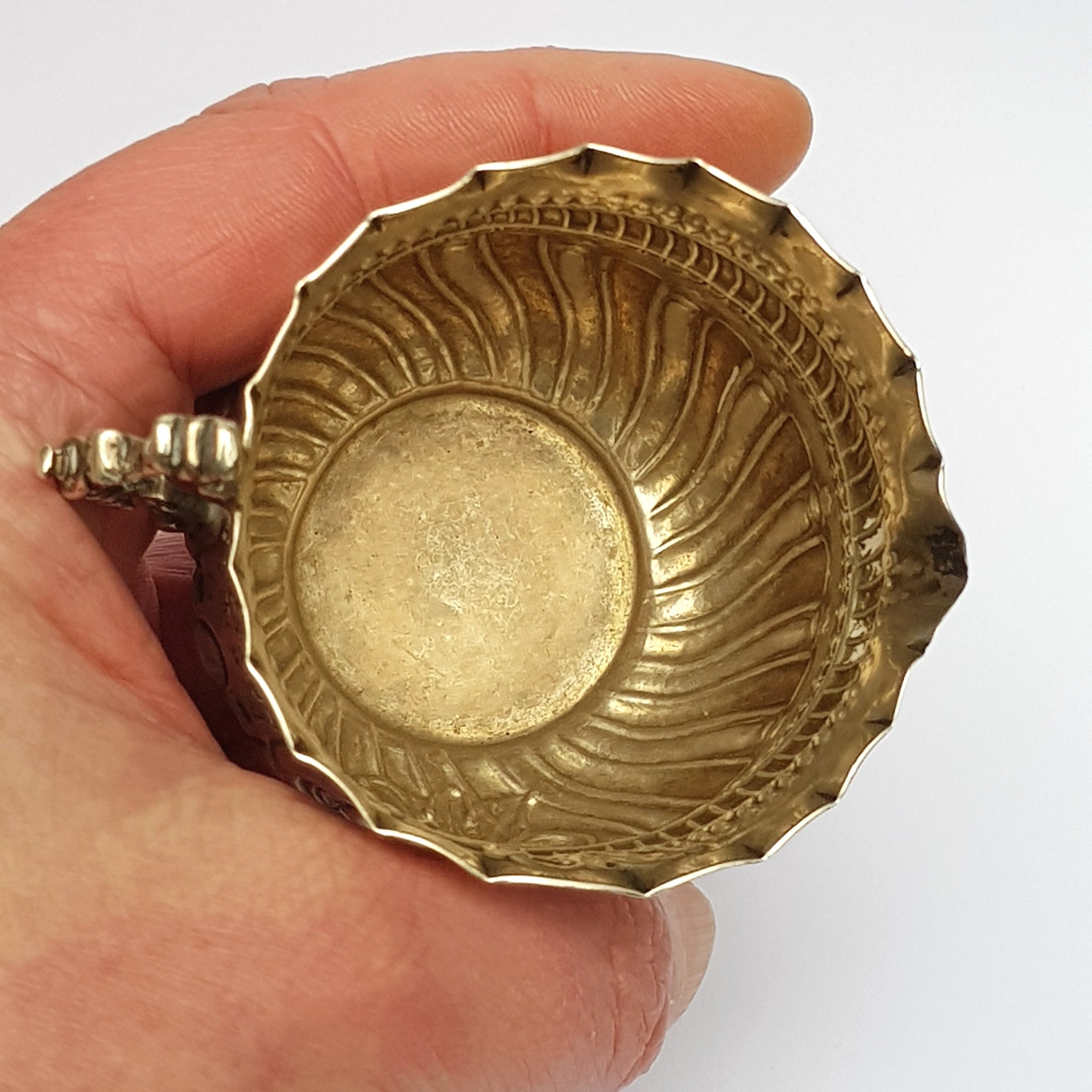 In Very good condition for age the creamer stands 5.2 cm tall (excluding handle) and has a body diameter of roughly 6 cm, good clear hallmarking's are present indicating London Assay Office circa 1890 with the makers mark for Wakely & Wheeler of Hatton Garden, London.