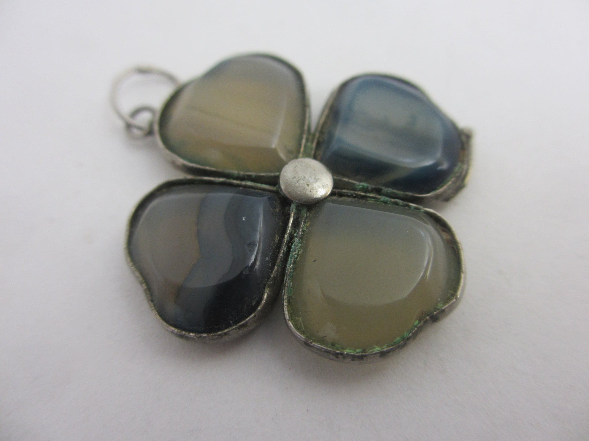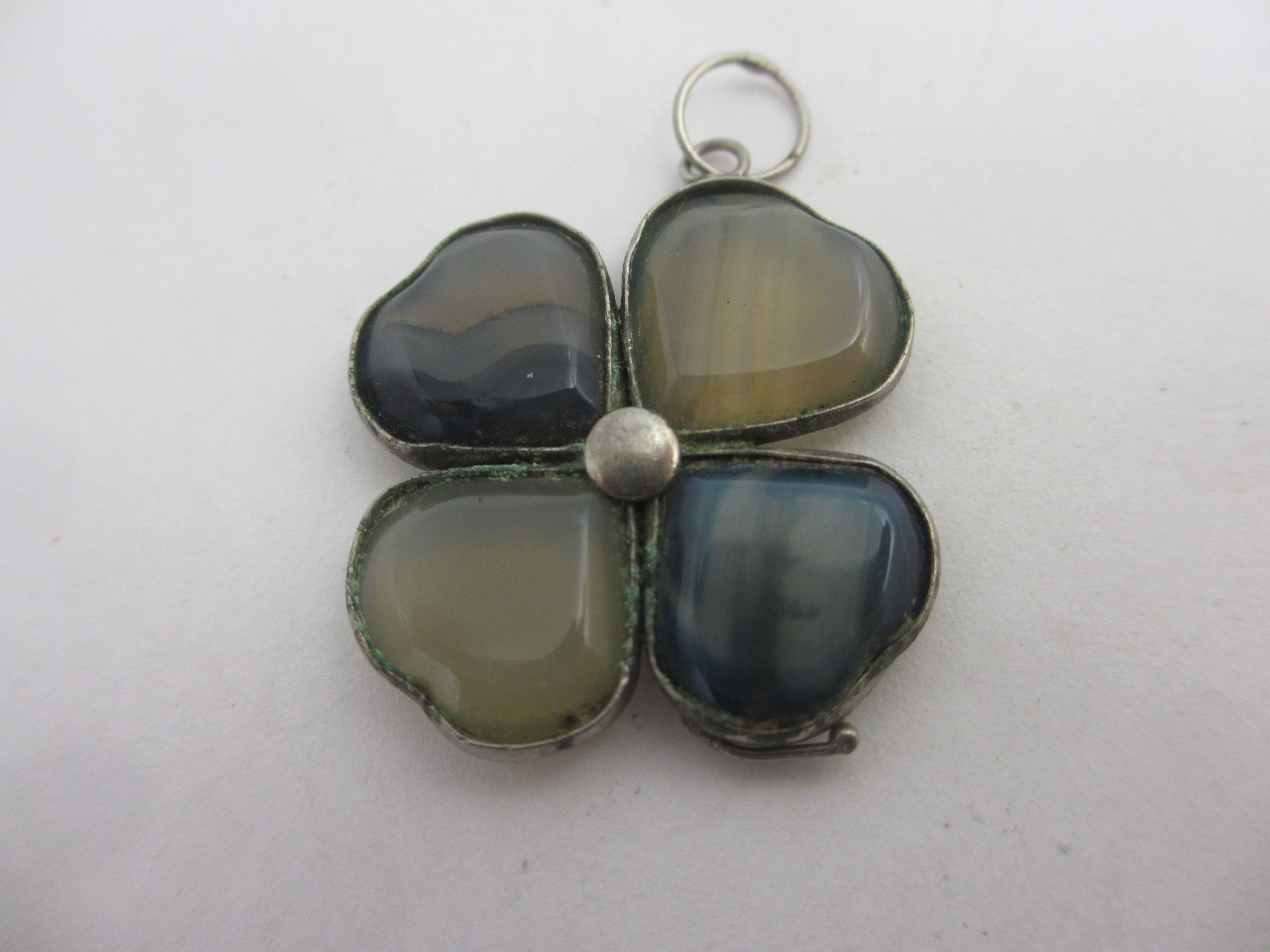 Moss Agate Lucky 4 Leaf Clover Pendant Antique Victorian
