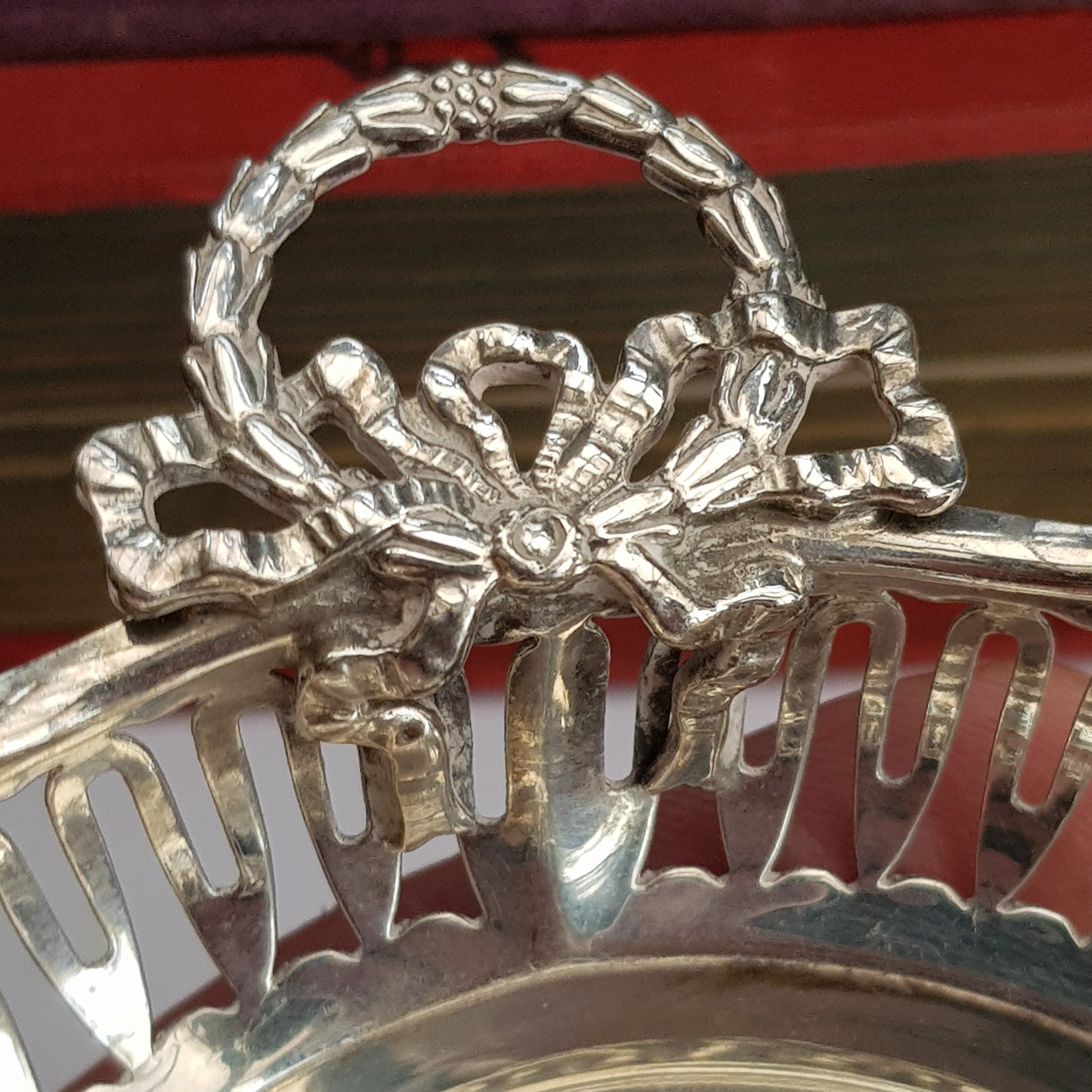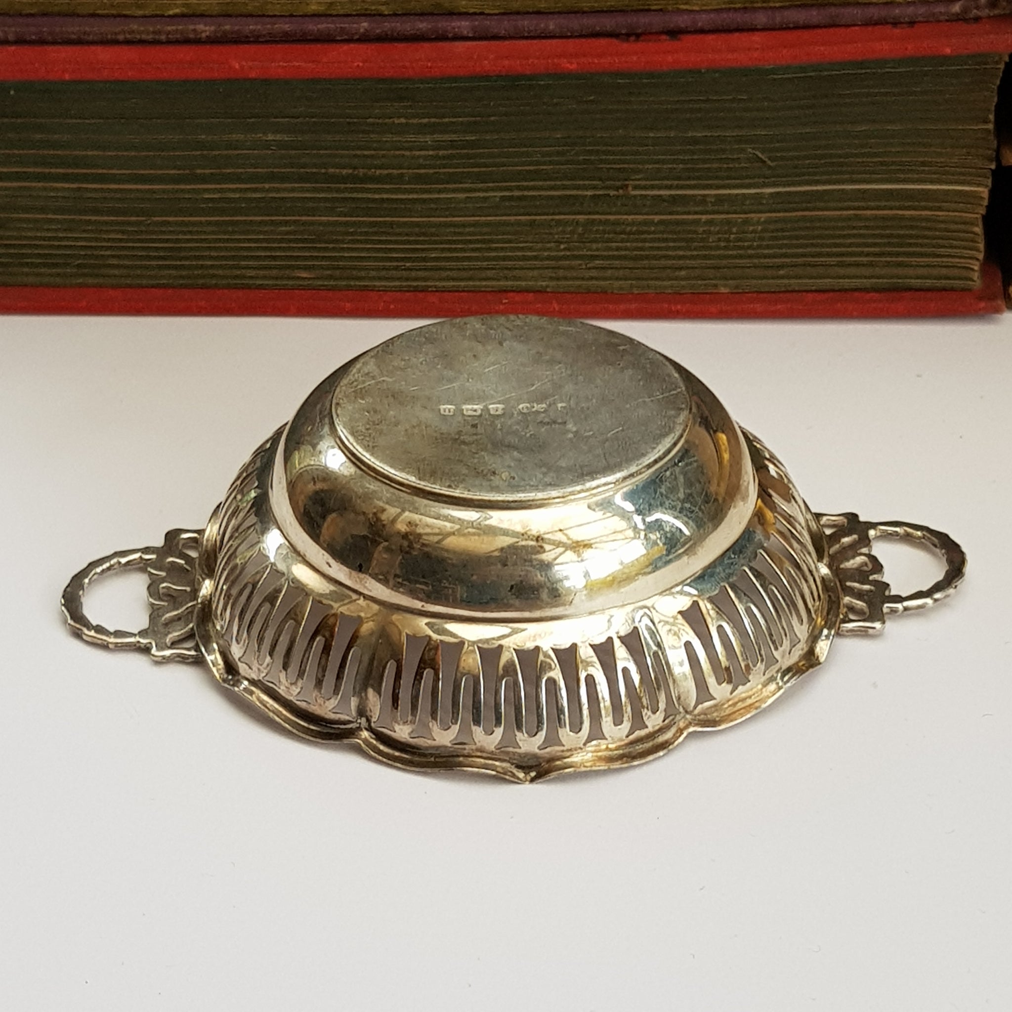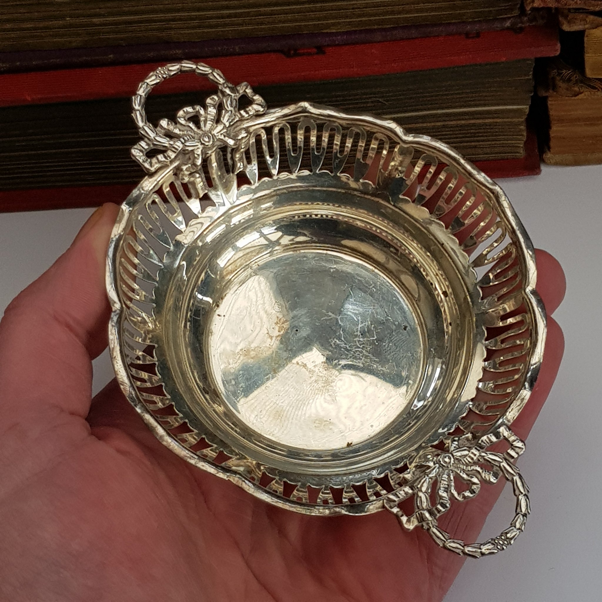Sterling Silver Ornate Fretted Lovers Knot Decorated Bon Bon Dish Antique Birmingham CIrca 1912