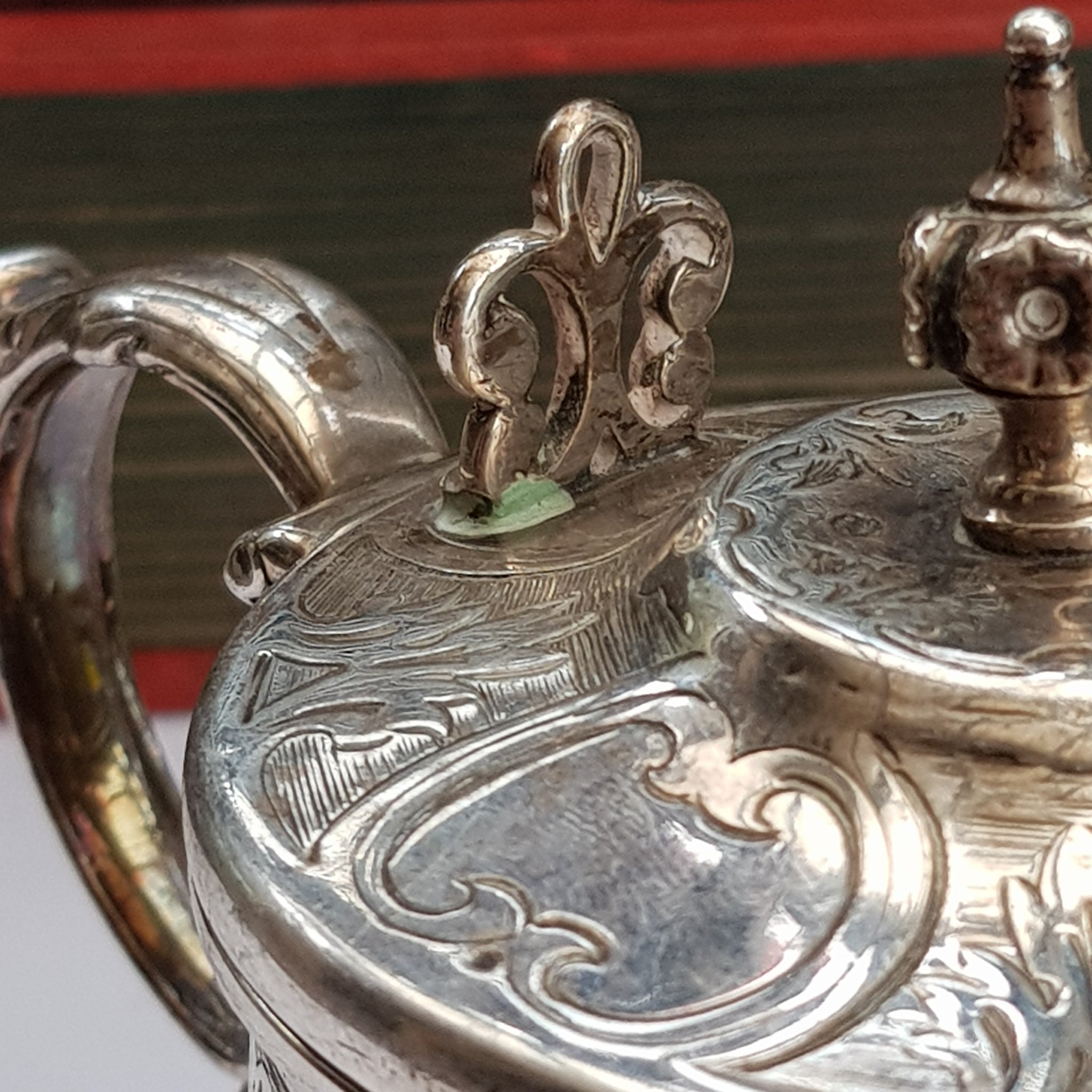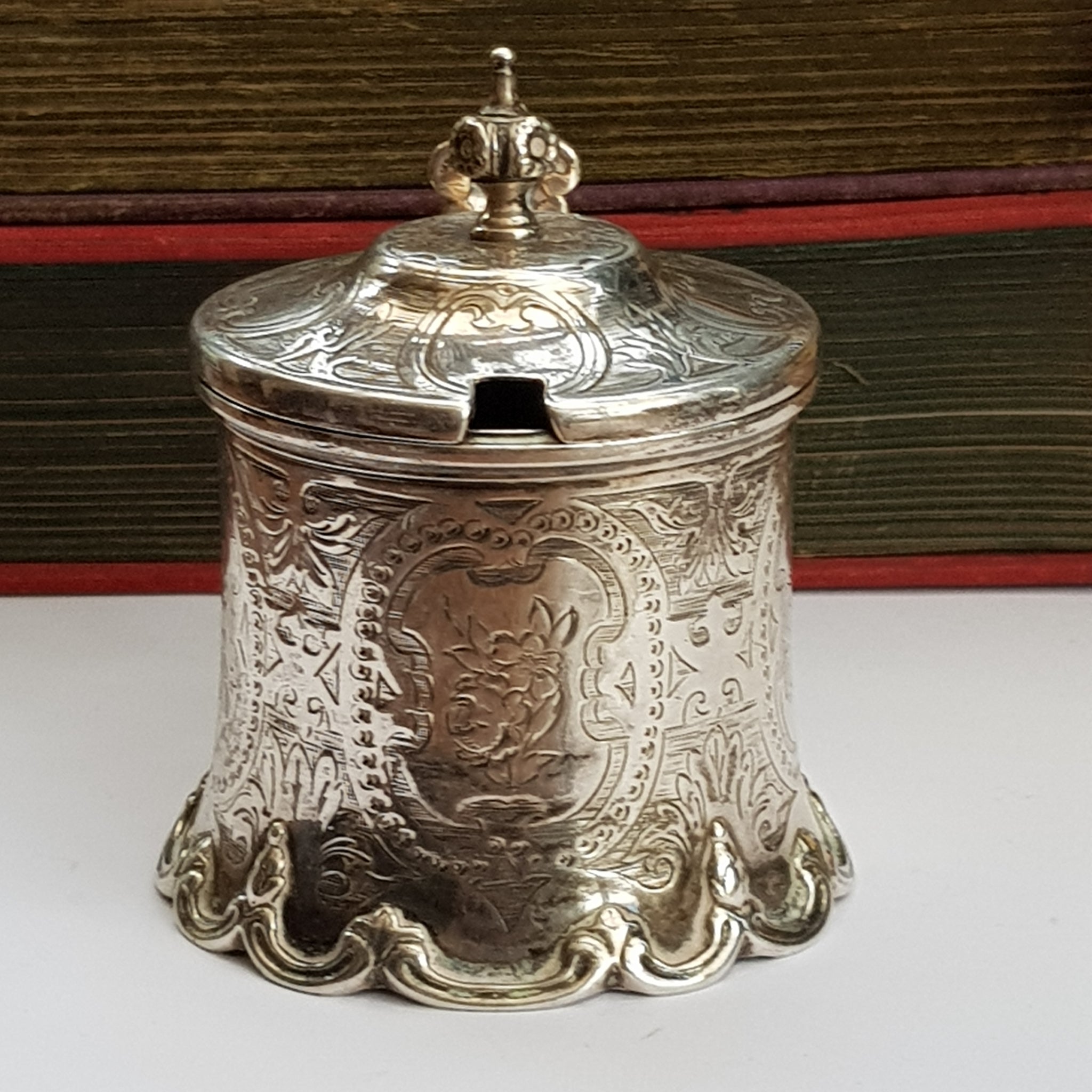 Large Sterling Silver Floral Chased Table Mustard Pot John Evans II Antique Victorian London circa 1860